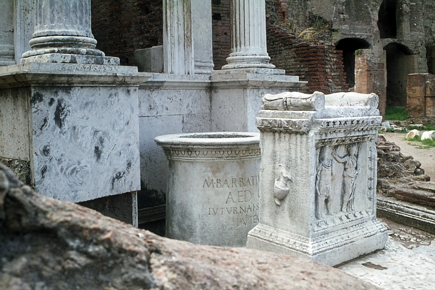 Le principal lieu de culte de Juturne à Rome était le lacus Juturnae, une fontaine située dans le Forum Romain, près du temple de Vesta et des Dioscures (Castor et Pollux). Ce site, considéré comme une source d’eau pure et salubre, jouait un rôle central dans les rituels religieux publics.