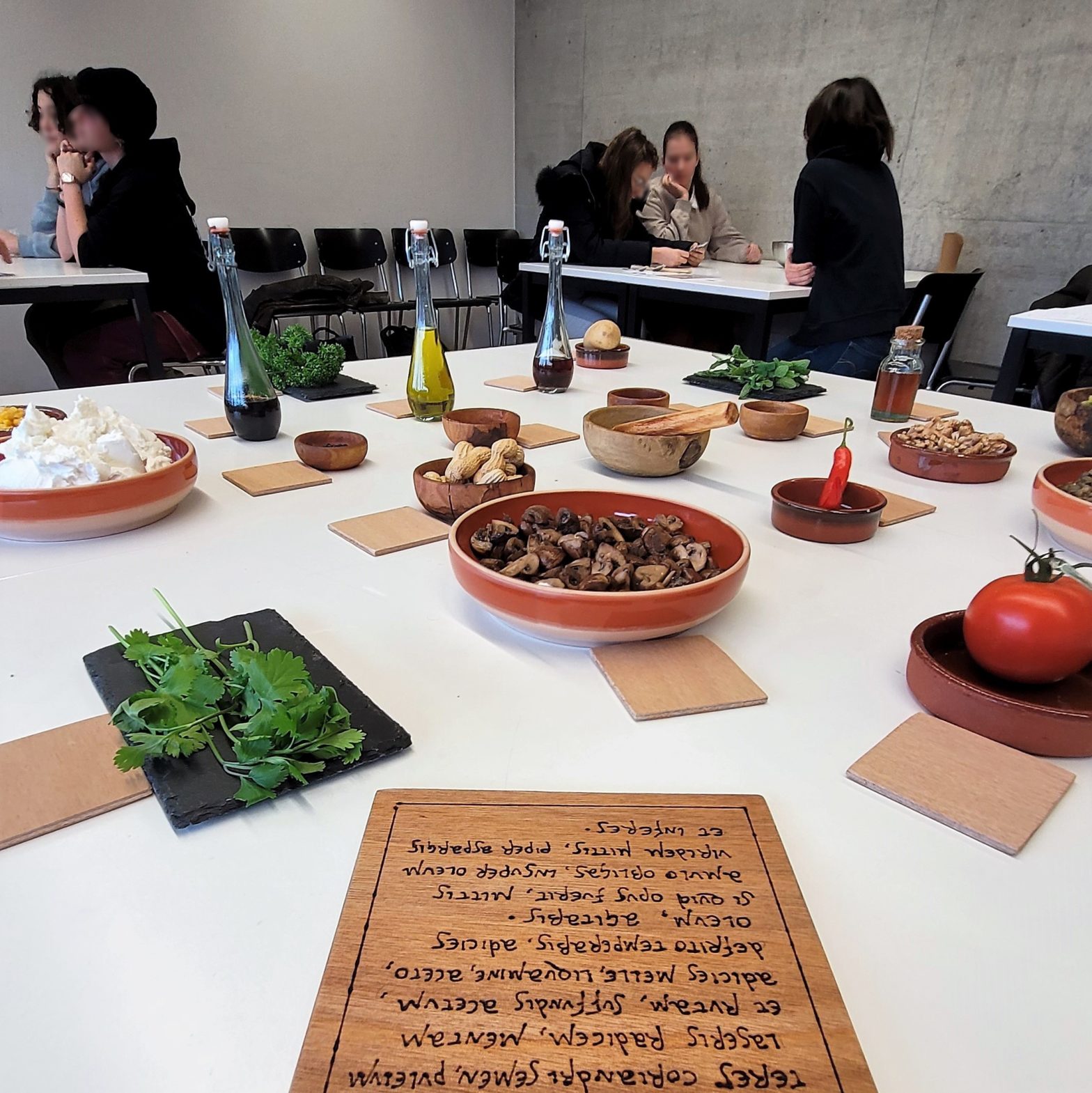Atelier de cuisine romaine au Gymnase de Nyon le 24 janvier 2023 lors du cours facultatif de culture antique de Kim Gobet… Identifier les ingrédients et les intrus, traduire la recette, cuisiner, déguster! Télécharger QR