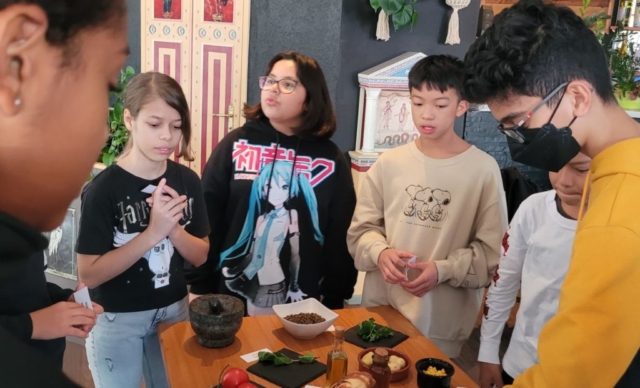 Dans le cadre des classes romaines organisées pour les écoles primaires par AvAnt Ge (La Nuit antique), l’association Nunc est bibendum a réalisé les 14 et 15 octobre 2021 des ateliers de découverte de la cuisine romaine antique. L’activité s’est déroulée en trois temps: identifier les ingrédients et les intrus, réaliser la recette, déguster… Une merveilleuse expérience!