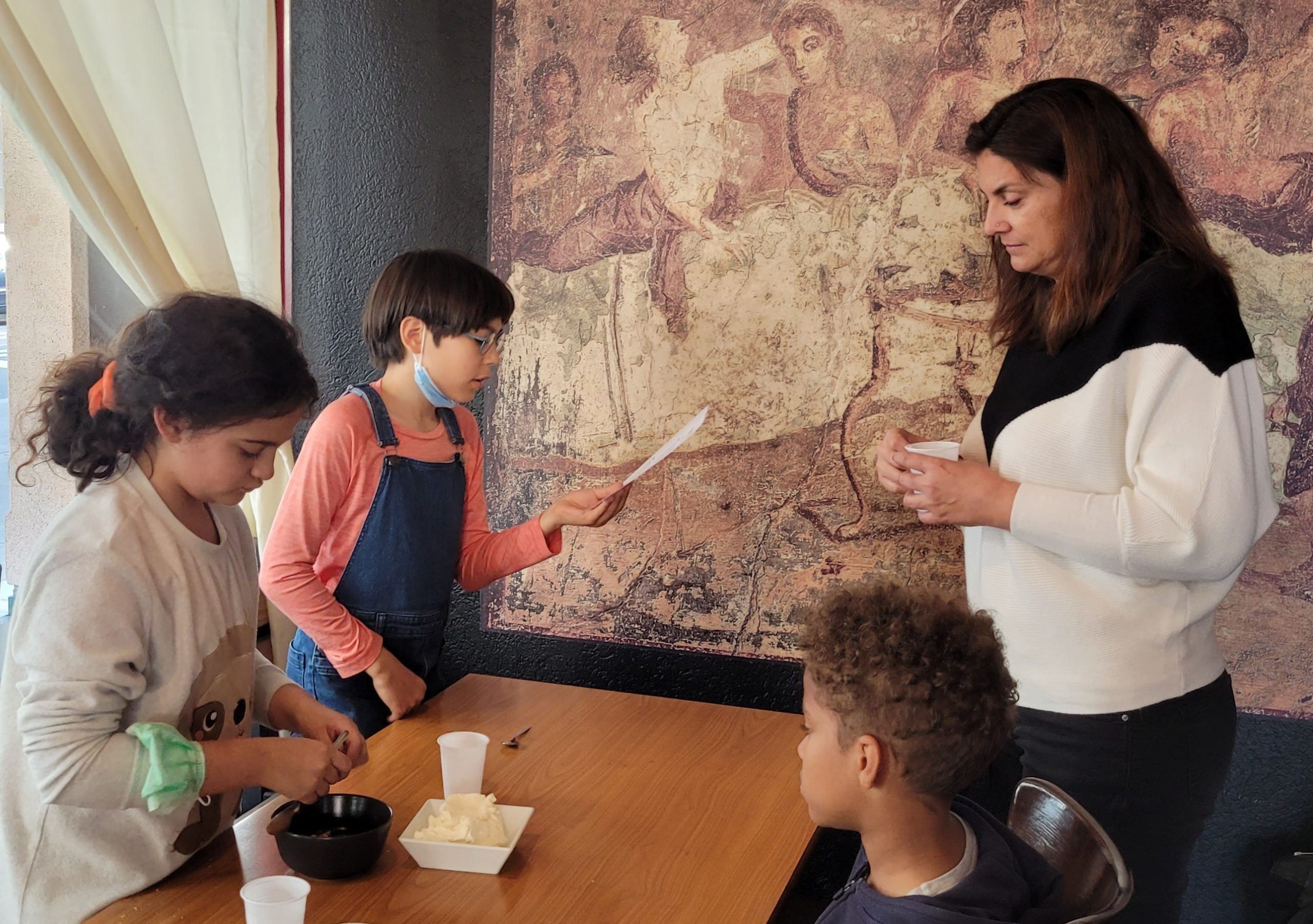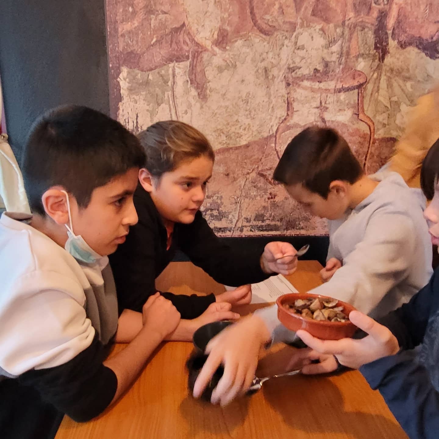 Dans le cadre des classes romaines organisées pour les écoles primaires par AvAnt Ge (La Nuit antique), l’association Nunc est bibendum a réalisé les 14 et 15 octobre 2021 des ateliers de découverte de la cuisine romaine antique. L’activité s’est déroulée en trois temps: identifier les ingrédients et les intrus, réaliser la recette, déguster… Une merveilleuse expérience!