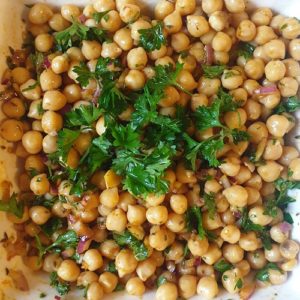 Les mongettes vertes et les pois chiches se servent avec du sel, du cumin, de l’huile et un peu de vin pur.