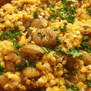 Inspiré de: Apicius, De re coquinaria, Liber V. Ospreon, II. Lenticula, 2 Aliter lenticulam (185) et V. Tisanam et alicam, 2. Aliter tisanam (202)