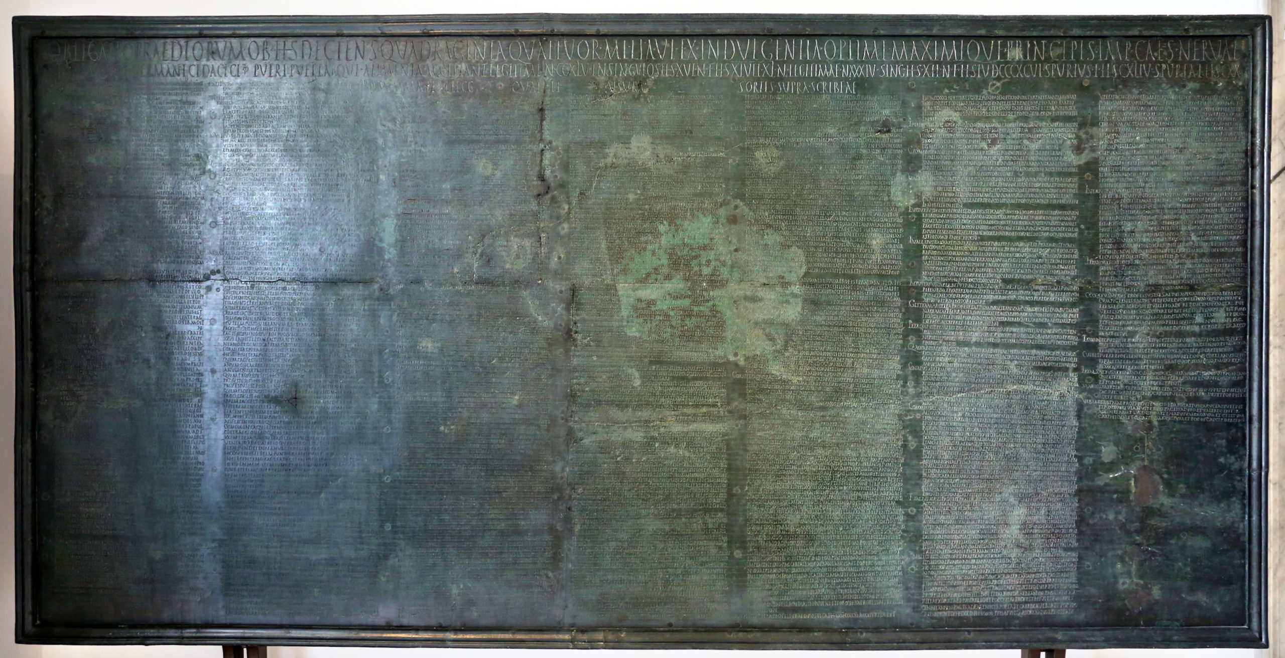 La tabula alimentaria trajanea fu scoperta casualmente nel 1747 (Di Sailko – Opera propria, CC BY-SA 4.0).