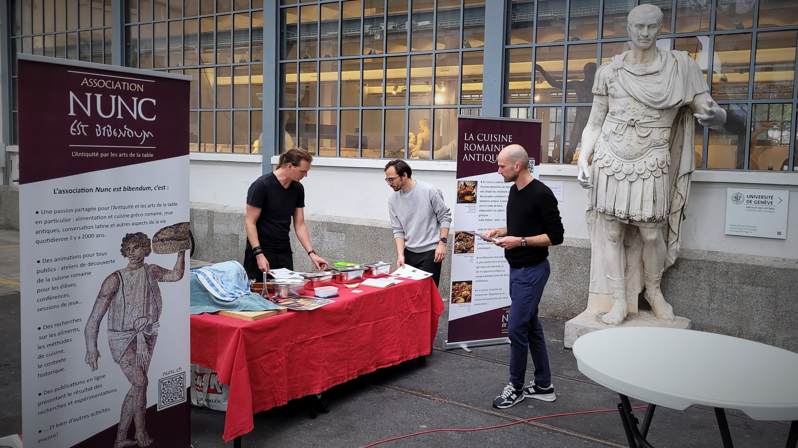 A l’invitation de la Collection des moulages de l’Université de Genève, l’association Nunc est bibendum était présente le 13 mai à la Nuit des musées, pour une dégustation de mets antiques, avec un public venu en nombre et très intéressé!