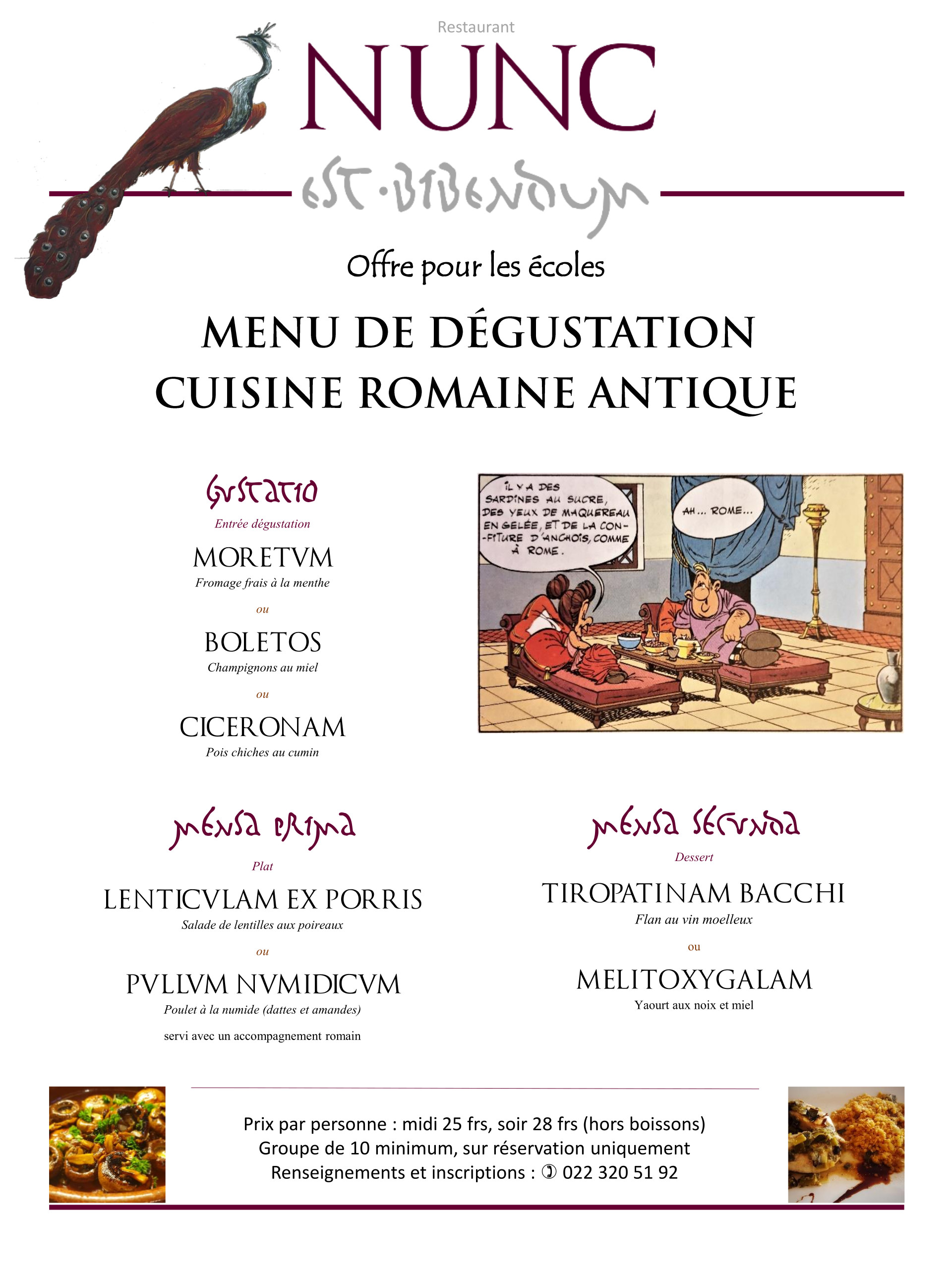 Le restaurant Nunc accueille très volontiers à midi ou le soir les enseignantes et enseignants avec leurs élèves! On trouvera ci-dessous un menu-type, mais tous les aménagements sont possibles.